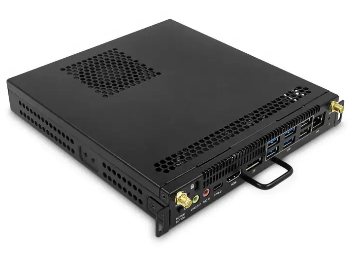 OPS es un estándar de PC modular desarrollado por Intel, que utiliza un conector común que suministra toda la energía y conectividad al módulo desde la pantalla táctil. El módulo OPS puede instalarse fácilmente en la parte trasera de la pantalla táctil adaptándose perfectamente a las pantallas ofreciendo una solución «Todo en Uno».